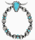 This Navajo Pearl Beaded Longhorn Stretch Bracelet is crafted from quality materials, with a durable design and intricate detailing. The silver-toned longhorn centerpiece is surrounded by glimmering pearl beading for a beautiful and timeless look. Perfect for everyday wear.