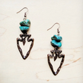 These genuine turquoise dangle earrings are the perfect complement to your boho or Western-inspired style! The copper arrowhead shape is distinctly unique, so no one will have the same pair. While your handcrafted earrings will look like the ones in the photo, no two pairs of our artisan earrings are exactly alike.