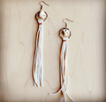 Turquoise Drop Earrings w/ Suede Leather Tassel - Cream