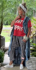 Make a bold statement with a bleached, distressed denim patchwork design.