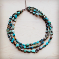 Expertly crafted in a boho style, this Triple Strand Necklace features beautiful handcrafted details featuring genuine HuBei Turquoise Stones.