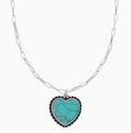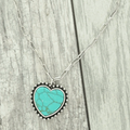 This Western-inspired necklace features a heart-shaped pendant with a turquoise stone center, symbolizing love, devotion, and desert romance. Crafted in oxidized silver-tone metal, it blends natural beauty with rustic elegance. The antique finish enhances its artisanal charm, while the lightweight design, smooth edges, and adjustable chain provide comfortable wear. A timeless piece that captures both the tenderness of affection and the enduring strength of Western style. Perfect For: Valentine’s Day, weddings, anniversaries, and romantic celebrations. A heartfelt gift for brides, loved ones, and Western romantics who appreciate jewelry that expresses love through the spirit of the desert and boho artistry.
