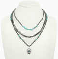 Key Features: Channel the spirit of the Southwest with this bold multistrand necklace and earring set. Featuring earthy turquoise beads and a floral-inspired pendant, the handcrafted aesthetic evokes vintage charm and bohemian elegance. The matching earrings complete the look, creating a statement ensemble that blends cowgirl glam with rustic sophistication. Perfect For: Rodeos, country concerts, music festivals, art shows, Western-themed parties, casual dinners, weddings, and seasonal gatherings. A stylish pick for everyday wear or special occasions, and a standout gift for lovers of Western flair and boho fashion.